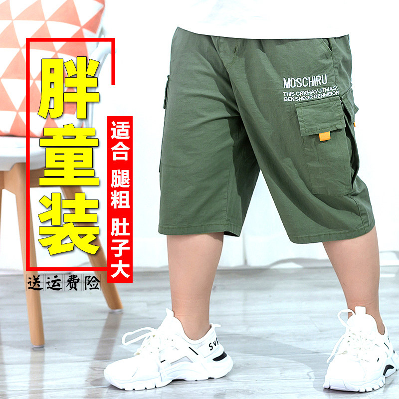 胖男童宽松休闲裤子2021夏季七分裤加肥加大工装裤中裤大码薄短裤热门设计联盟服务商
