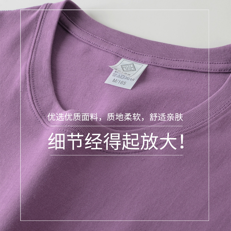 200克新疆纯棉女T恤纯色宽松短袖体恤班服团队服文化衫2021年圆领热门设计联盟服务商
