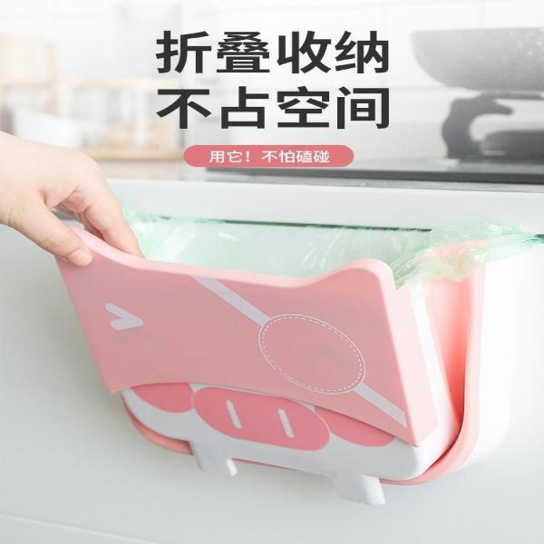 可爱小猪日式折叠垃圾桶 壁挂式厨房橱柜门湿垃圾收纳桶卡通粉色热门设计联盟服务商