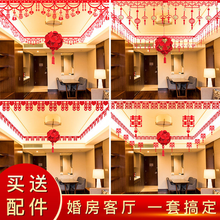 婚庆用品结婚拉花婚房装饰新房客厅房间布置套装卧室喜字A拉花套热门设计联盟服务商