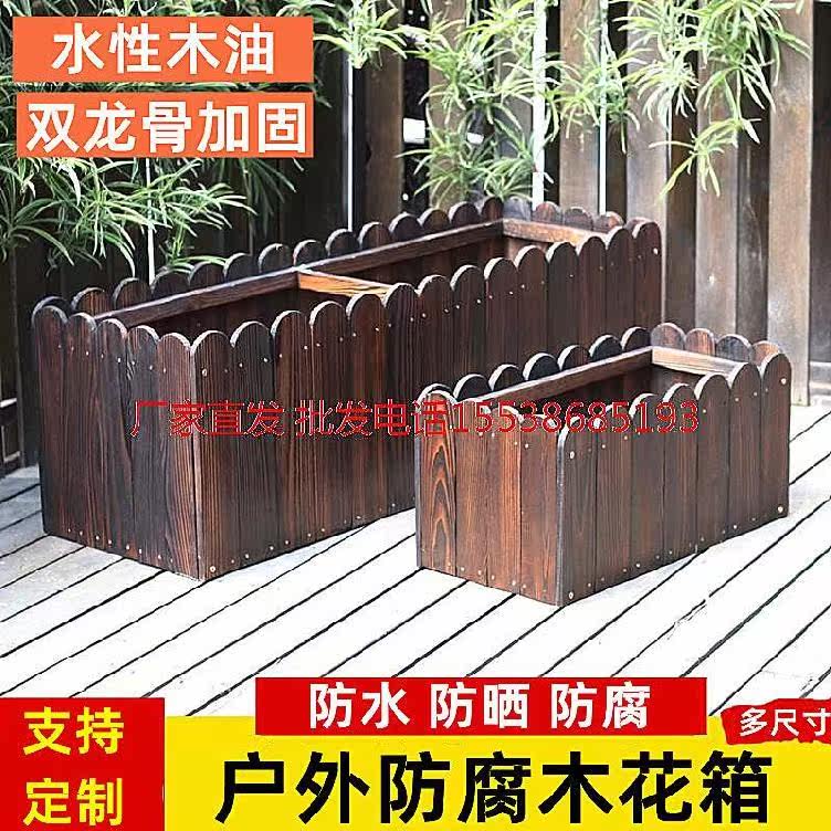 防腐木花箱长方形加高商业街户外种植箱园艺墙边木花盆花草花园架热门设计联盟服务商