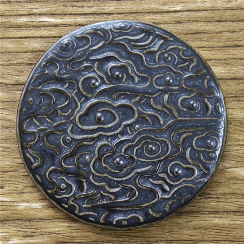 影青釉高温细瓷文创设计文艺茶道茶具白色宋风中式复古圆形杯垫热门设计联盟服务商