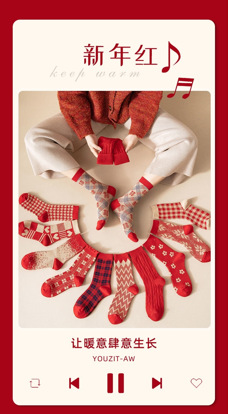 本命年大红色袜子中筒袜百搭爱心卡通婚庆保暖袜子男女情侣长筒袜热门设计联盟服务商